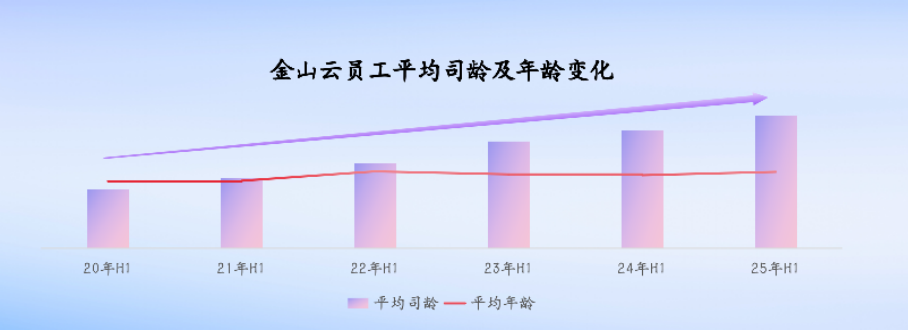 更值得关注的是一组看似矛盾却极具价值的数据:五年间,金山云全体员工的平均年龄始终保持稳定,干部队伍的平均年龄也仅有微小变化,保持着年轻组织的创新活力;与此同时,员工平均司龄较2020年实现翻倍增长,核心人才留存率大幅提升。这种"年轻活力不减、核心人才稳定"的双向平衡,成为金山云组织管理的鲜明标签。