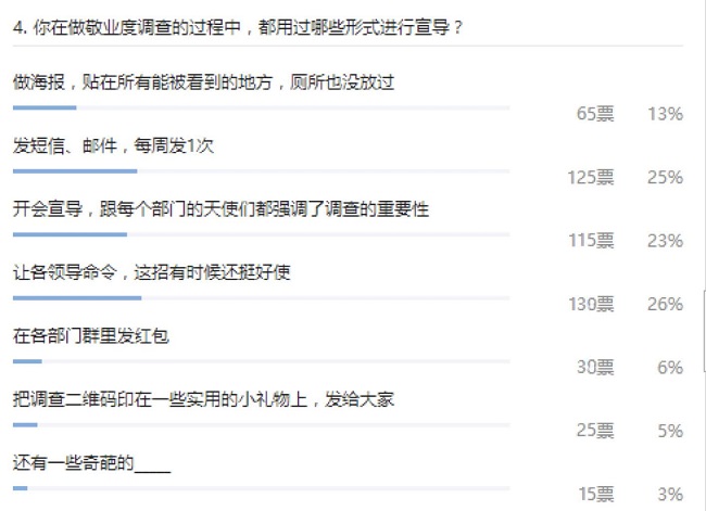 沟通环节里让大家花心思的,是前期的调研宣导,先看看我们了解到的情况: