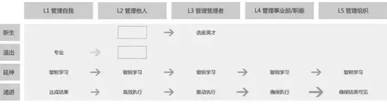 从横向来看,随着管理层级递进,胜任力项的变化有四种形式:新生、退出、延伸、递进。通过低一级或高一级对应的能力,可以了解该能力在不同层级的演进,能力在上一层级或下一层级有何变化。